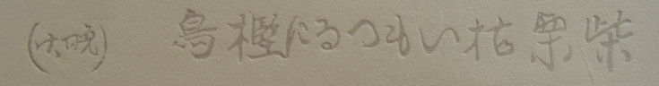 Japanese Jay, Garrulus glandarius japonicus, 懸(け)巣, かけす, カケス, kakesu, is is one of the Japanese subspecies of the widespread Eurasian Jay, Garrulus glandarius. The Japanese birds have distinctive plumage variations, and the bird Rakusan shows is easily identified as the type he would have encountered wild near his Kyoto home. All Eurasian Jays regularly eat nuts and therefore can often be found in nut trees. The name Rakusan used, 樫鳥, 橿鳥, かしどり, カシドリ, kashi-dori, lit. 'evergreen-oak bird', is one of several popular names playing on the birds' fondness for acorns.